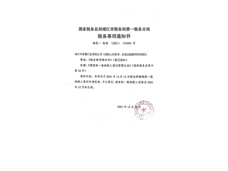 • 稅務(wù)事項(xiàng)通知書