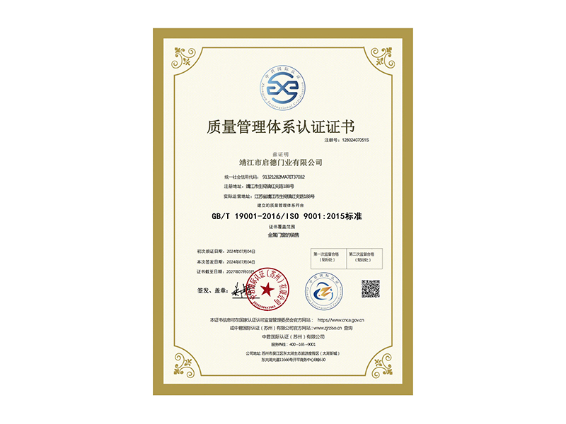 • 質(zhì)量管理體系認(rèn)證證書